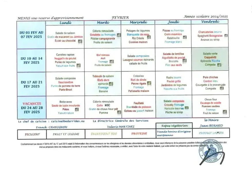 Les repas sont pris à l'école.
